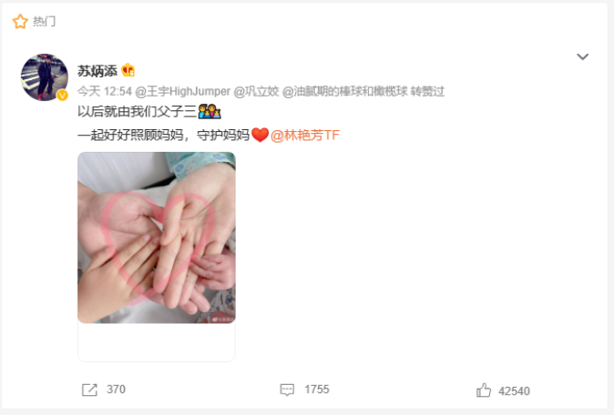 随后,#苏炳添二胎患上子#的添官往事也冲上微博热搜。
