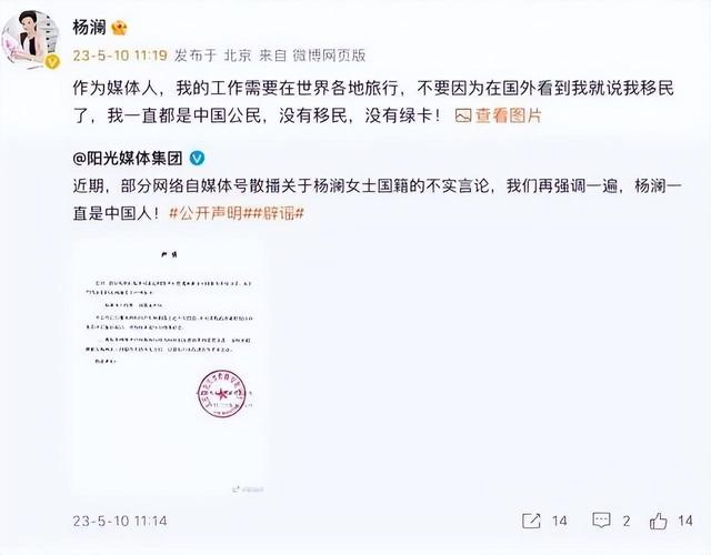 5月10日,驰名对于部份群集自媒体号对于杨澜女士国籍的主持招供行动,杨澜晒身份证护照造谣此风闻。人杨