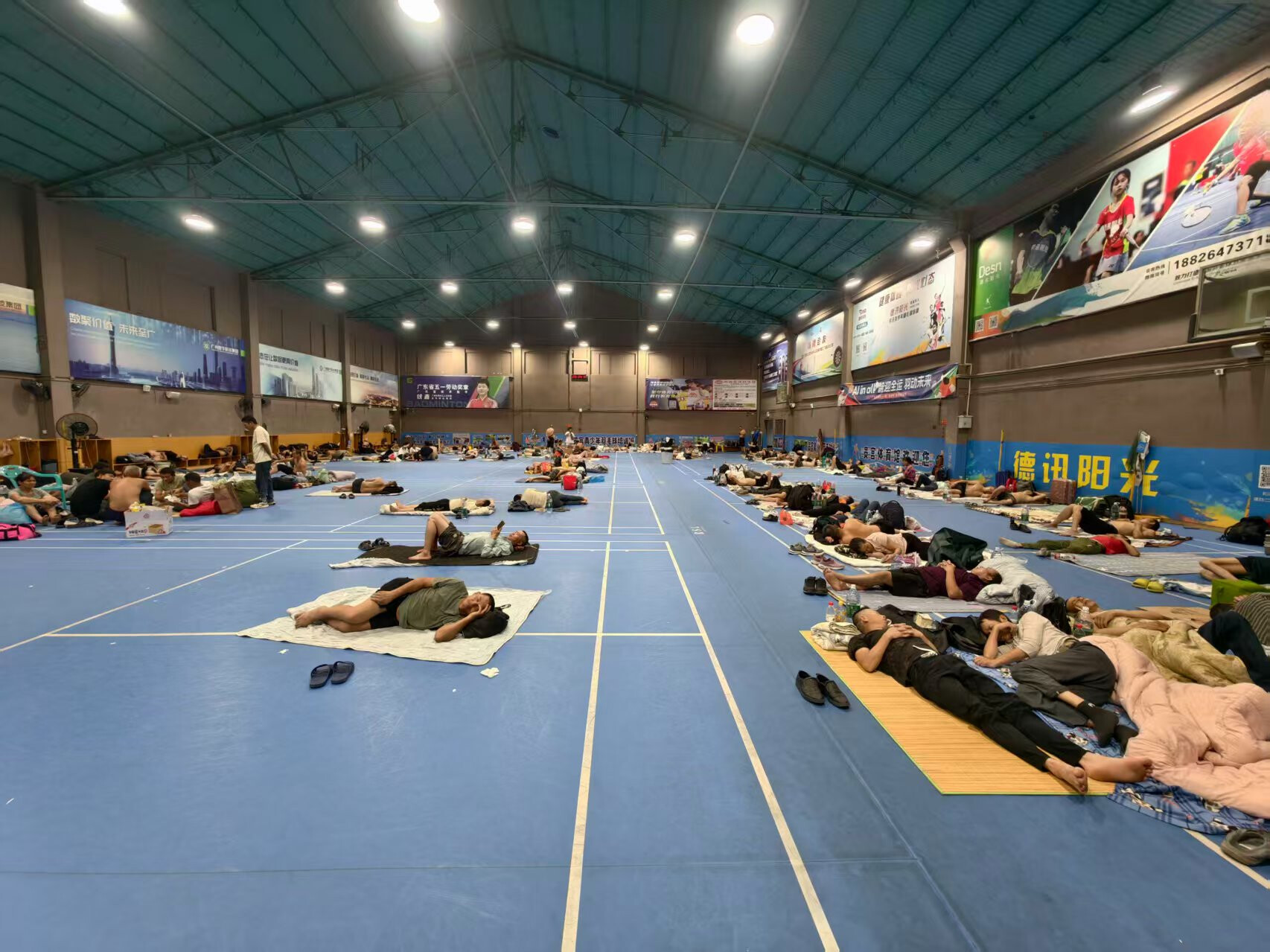随着职员削减,馆内温度回升,使命职员赶紧救命空调风扇;保安增强巡视,揭示消防呐喊。窗外台风咆哮,馆内却是一片舒适,工人们谈天、刷手机,困倦的脸上重现笑颜。饭堂提供的9.9元爱心餐(四菜一汤,荤素搭配管饱)更让工友们感遭抵家的紧迫。