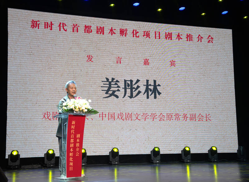 北京市横蛮以及飞翔局艺术到处长刘元霞介绍新时期国都剧本孵化名目下场。 摄影:谢建明